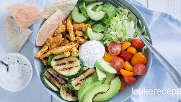 Deze versie van een broodje shoarma met zelf gekruide kip en lekker veel groenten is net even iets gezonder dan een broodje van de shoarmazaak