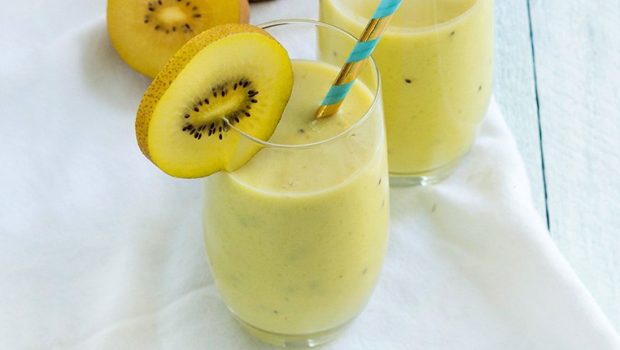 Met deze smoothie heb je een kickstart van een ochtend, want hij zit boordevol vitamines. Extra lekker door de gele kiwi en de romige avocado.
