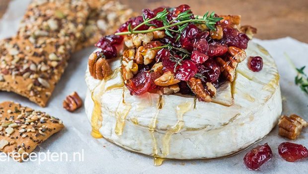 Begin de kerstborrel of kerstdiner goed met deze camembert met cranberry uit de oven