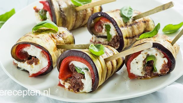 Deze plakken gegrilde groenten gevuld met ricotta en olijven tapenade zijn een perfect vegetarisch hapjes voor een tapas avond!
