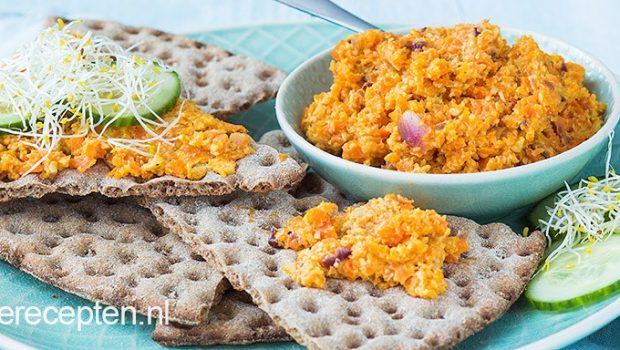 Een heerlijk broodsmeersel met geroosterde wortel om aan je dagelijkse portie groenten te komen.