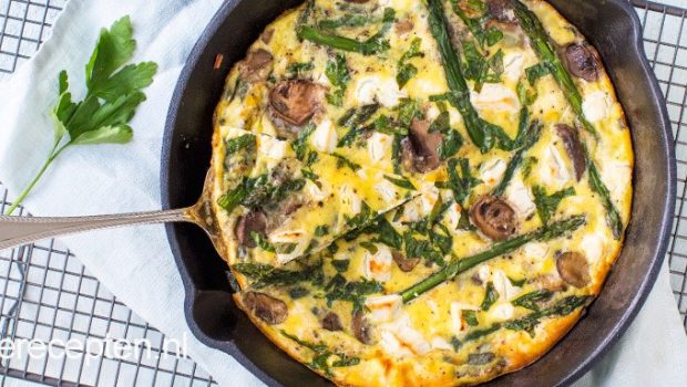 Lekkere omelet uit de oven met groenten en geitenkaas, lekker als lunch!