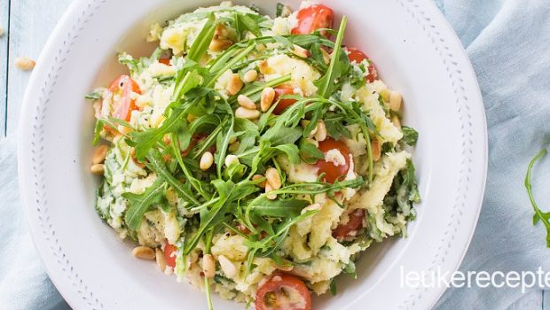 Een stamppotje met rucola en tomaat dat lekker smaakt in de winter maar ook in de lente
