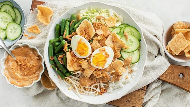 Een makkelijk recept voor een vegetarische gado gado uit de Indonesische keuken. Gado gado is een super smaakvol indonesisch recept en zeker een van mijn persoonlijke favorieten. Het bestaat uit een mix van knapperige en gekookte groenten, ei en rijst en wordt daarna overgoten met heerlijke pindasaus. Perfect als hoofdgerecht of onderdeel van een rijsttafel.