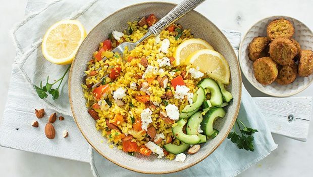 Dit lekkere gerecht van bloemkoolcouscous, paprika en feta bevat veel groenten en is bovendien koolhydraatarm.