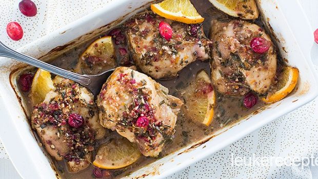 Deze kip is gemarineerd met balsamicoazijn, sinaasappel en cranberry voor een heerlijk hoofdgerecht tijdens het Kerstdiner.