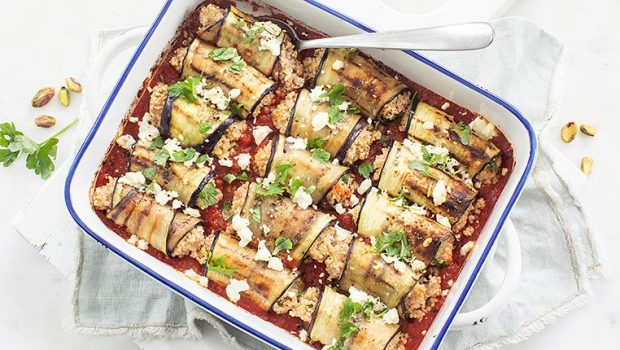 #9 Ovenschotel met aubergine rolletjes en couscous