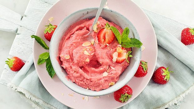 Makkelijk en gezond zelf frozen yoghurt maken met maar 3 ingrediƫnten! Lekker als toetje of als ijskoud tussendoortje