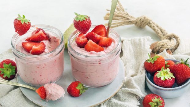 Maak in 10 minuten dit makkelijke toetje van luchtige en frisse aardbeienmousse zonder gelatine of eieren.