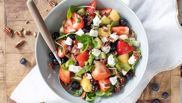 Verwerk zomerfruit in je salade zoals passievrucht en mango. Heerlijk met geitenkaas, pistachenootjes en een verfrissende dressing. Ook lekker als bijgerecht bij de BBQ.