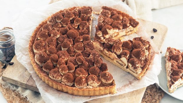 Probeer mijn tiramisutaart met een krokante bodem, romige mascarponevulling en een laag van koffie-doordrenkte lange vingers. Dit eenvoudige, maar smaakvolle dessert is ideaal als afsluiter voor ieder etentje. Maar ook op een feestje lekker bij een kop koffie of thee.