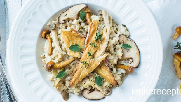 #4 Paddenstoelenrisotto van parelgort met makreel