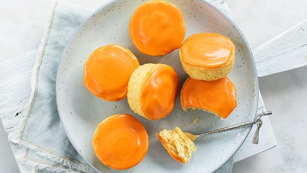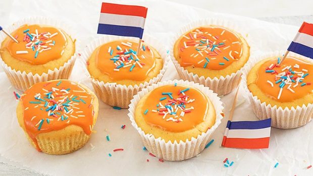 Lekker smullen tijdens Koningsdag; vers gebakken muffins met een vleugje sinaasappel en een oranje glazuur laag