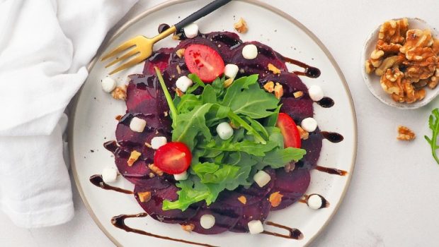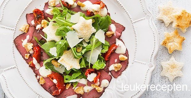Met deze feestelijke en snelle carpaccio salade tover je een instant smile tevoorschijn bij je tafelgenoten!