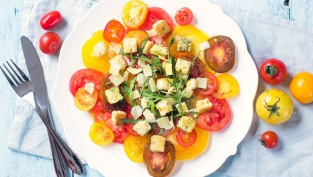 Super makkelijk en heerlijke vegetarische variant op de carpaccio gemaakt van tomaten