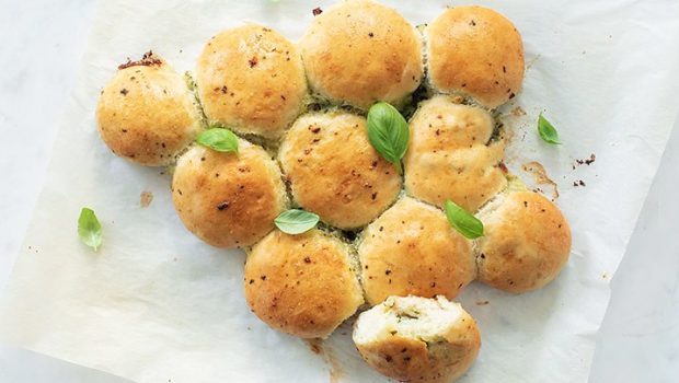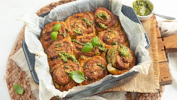 Geniet van zelfgebakken pesto broodjes, perfect voor elke gelegenheid! Met een vleugje knoflook en Parmezaanse kaas, gevuld met heerlijke pesto en afgebakken in de oven. Leuk bij de borrel, een high tea of Pasen.