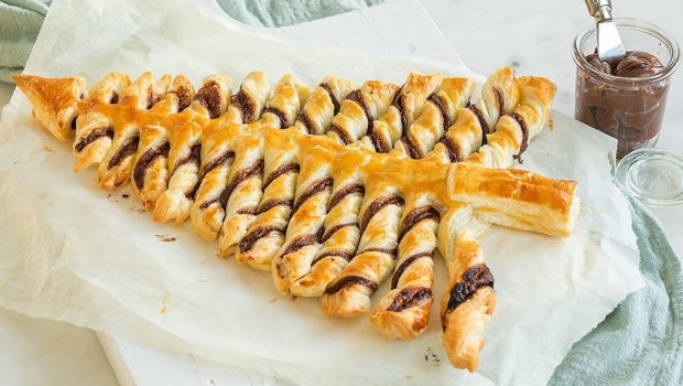 Heerlijke zoet baksel van knapperig bladerdeeg met een vulling van Nutella met maar 3 ingrediƫnten waar iedereen van mee smult tijdens het kerstontbijt of brunch.