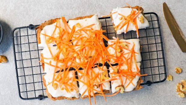 Een heerlijk worteltaartje in een gezonder jasje, met een lekkere frisse topping van Griekse yoghurt