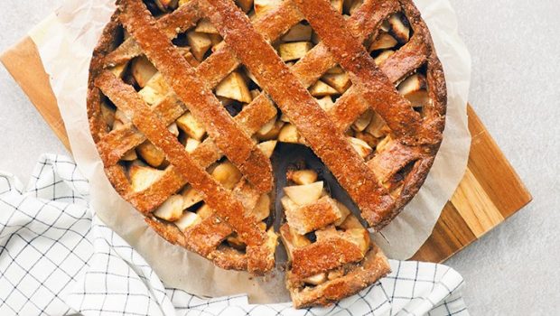 Deze gezondere versie op de bekende appeltaart gemaakt met o.a. volkorenmeel en zonder geraffineerde suiker smaakt heerlijk en is bovendien een stuk verantwoorder