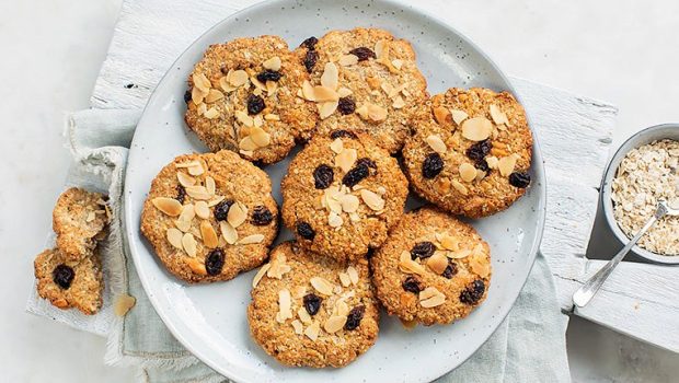 Deze koekjes op basis van havermout zijn lekker knapperig aan de buitenkant en iets zacht van binnen en bovendien voedzaam en natuurlijk gezoet. Een lekker en gezond tussendoortje. Bak een hele lading van deze havermoutkoeken en bewaar ze in een trommel en je hebt er altijd een bij de hand.