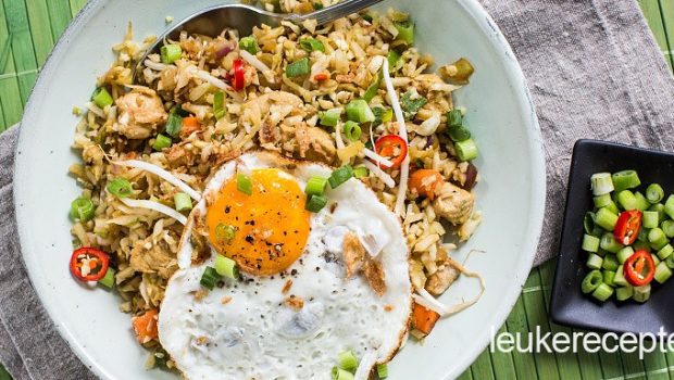 Deze nasi zonder rijst is gemaakt van bloemkool en bevat daarom extra veel vitamientjes.