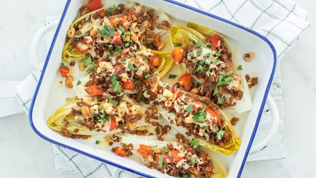 Witlof uit de oven met een heerlijke kruidige gehaktvulling met Oosterse twist