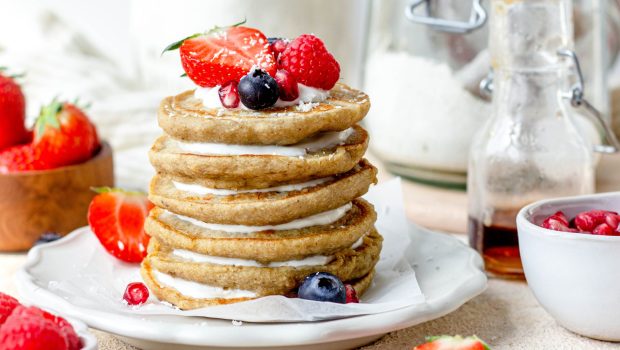 Makkelijk te maken glutenvrije pannenkoeken op basis van havermeel en boekweitmeel.