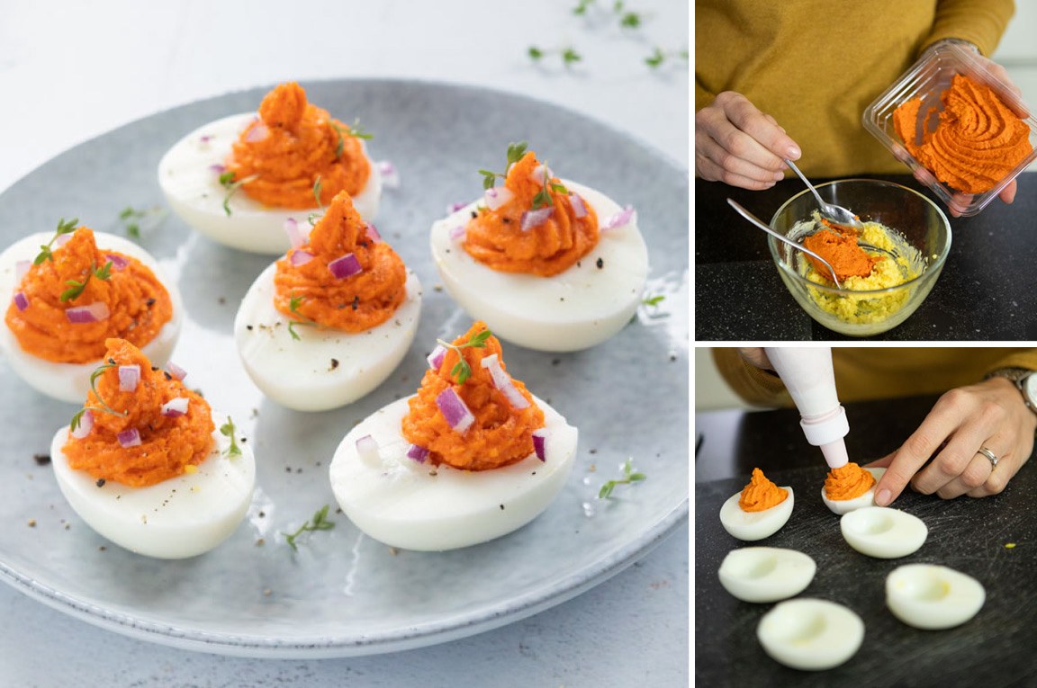 Deze hapjes zijn alle 3 heel makkelijk te maken en zijn ideaal voor tijdens een verjaardag, borrel of natuurlijk met Pasen. En daarnaast zijn ze ook geschikt voor vegetariërs want ze zijn helemaal vega! Ik gebruikte voor de gevulde eieren namelijk de nieuwe Crème Américain van SMAECK. Dit is een vegetarische variant van de filet American op basis van Valess, en daarom ook helemaal veilig voor zwangere vrouwen. Ik vond de smaak heel erg lekker, het is dat ik wist dat het vegetarisch was anders had ik geloofd dat het gewone filet americain was. Wil jij hem ook graag testen? Meld je dan hier aan of lees verder in deze blog.