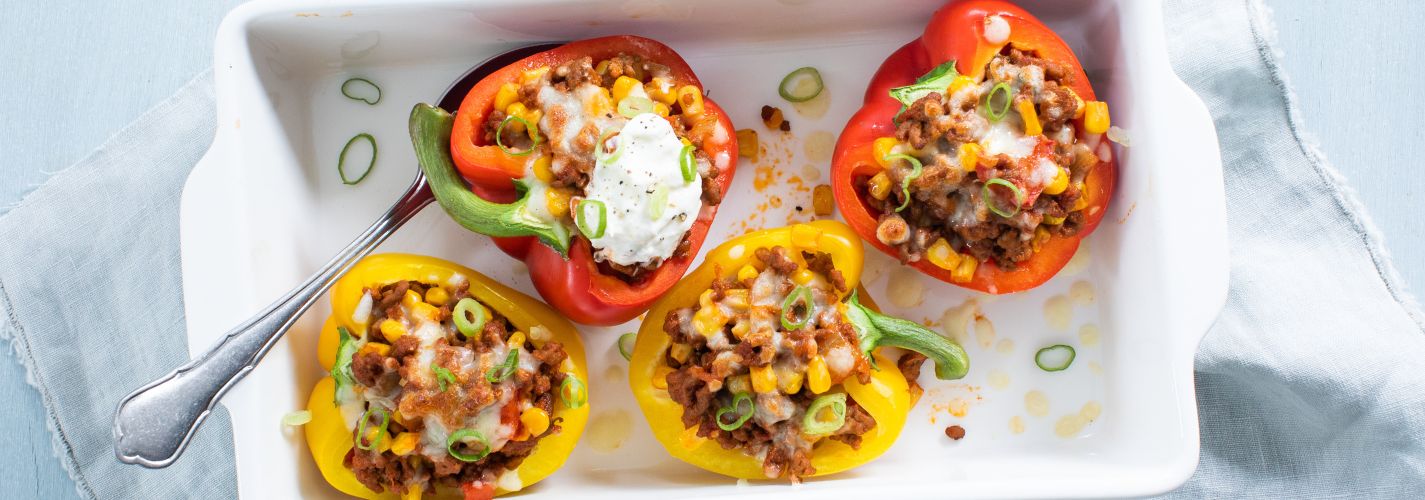 Gevulde paprika's hebben voor mij altijd de perfecte smaakcombinatie! De knapperige paprika, het gekruid gehakt, de zoete mais en heerlijk laagje kaas zorgen voor een heerlijke mix van structuur en smaak. Na het bakken voeg ik ook nog altijd een lepeltje zure room toe voor een lekker sausje. Ik maak dit recept vaak ik wanneer geen zin heb om super lang in de keuken te staan, maar wel iets voedzaams en smaakvols wil bereiden. En het maken is ook nog eens super eenvoudig! Je bereidt alleen maar de ingrediƫnten in de pan, vult de paprika's en dan doe je ze even de oven in. Ze zijn overigens ook super lekker uit de airfryer of van de bbq!