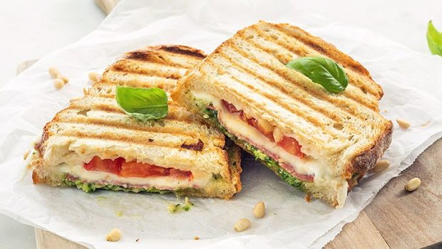 Super lekker lunch recept voor Italiaanse tosti met salami en pesto. Maak zelf deze goed belegde tosti van gegrild brood met pesto, tomaat en salami ertussen of serveer als avondmaal met een kop soep.
