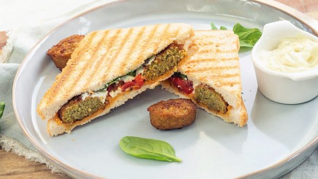 Deze vegetarische tosti met een Arabische twist van falafel, hummus en spinazie moet je een keer proberen!