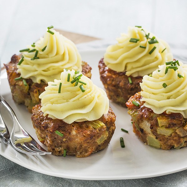 Hoofdgerecht: Mini gehaktbroodjes met aardappeltoef