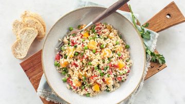 Bekijk hier alle lekkere recepten met rijst op een rij + handige informatie. Van rijstgerechten met kip tot vegetarische rijstschotels. En van Griekse rijst tot Aziatische gerechten met rijst. Maar ook als onderdeel van een recept zoals bij paella, nasi of risotto. Ook vind je informatie zoals hoe lang kook je rijst, welke soorten rijst zijn er en hoeveel rijst gebruik je per persoon?
