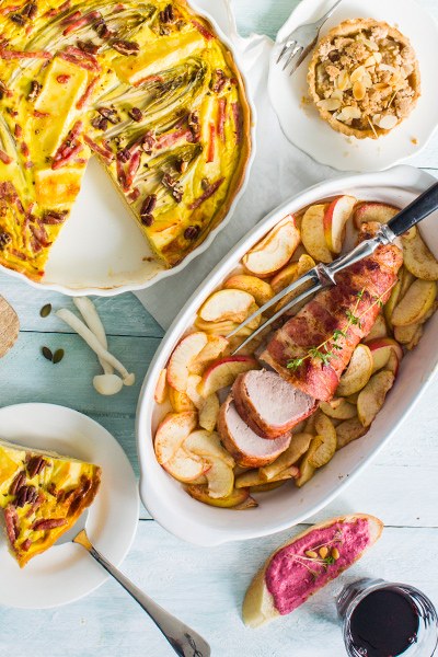 - Voor het hoofdgerecht is het handig om iets te bereiden in de oven zoals een lasagne, traybake of quiche, dit kun je namelijk even warm houden (eventueel met aluminiumfolie erover zodat het niet uitdroogt)