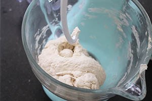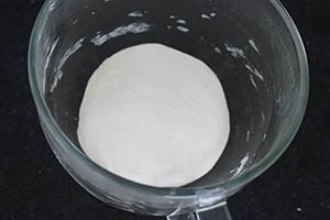 Meng de bloem met de gist en een snufje zout. Voeg het water en de olie toe en meng met een mixer met deeghaken in een paar minuten tot een soepele bal deeg. Leg deze bal in een kom die bebloemd is met bloem. Dek af met een iets vochtige theedoek en laat 45 minuten rijzen op een warme plek in huis of in de oven op 30 graden.