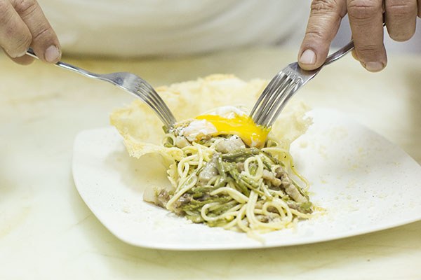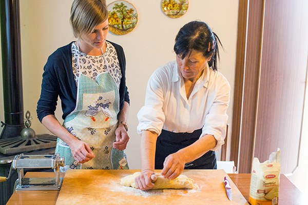 In de avond kregen we een kijkje in de keuken bij Roberto van Restaurant Santa Lucia in Tollo. Hier kun je terecht voor een heerlijke pizza uit de steenoven of een typisch vleesgerecht uit de streek. Roberto maakte een spaghetti met wilde asperges in een bakje van parmezaanse kaas. En natuurlijk mochten wij als eersten proeven. Heerlijk! Je proeft dat alles vers gemaakt is en pure ingrediënten bevat. Daarna mocht ik meehelpen met het maken van een soort pastaschotel met een dakje van deeg. Ook hier hebben we van zitten te smullen, en dan te bedenken dat dit gerecht eigenlijk een soort tussengerecht is, oef!