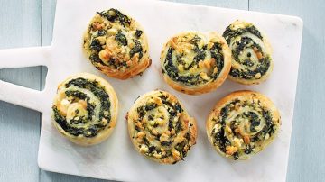 – Bladerdeeghapjes met bijvoorbeeld spinazie en feta, of met knakworstjes voor de kids