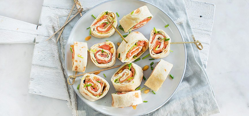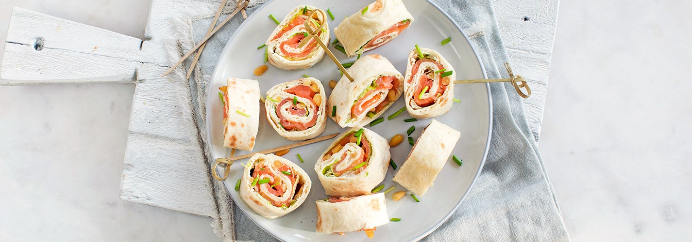 – Wraprolletjes met bijvoorbeeld zalm of gerookte kip