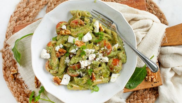 Geniet van de smaken van deze pasta met cannellini bonen saus en feta - een romige, hartige saus met een vleugje citroen en walnoten. Perfect voor een snelle en voedzame maaltijd!