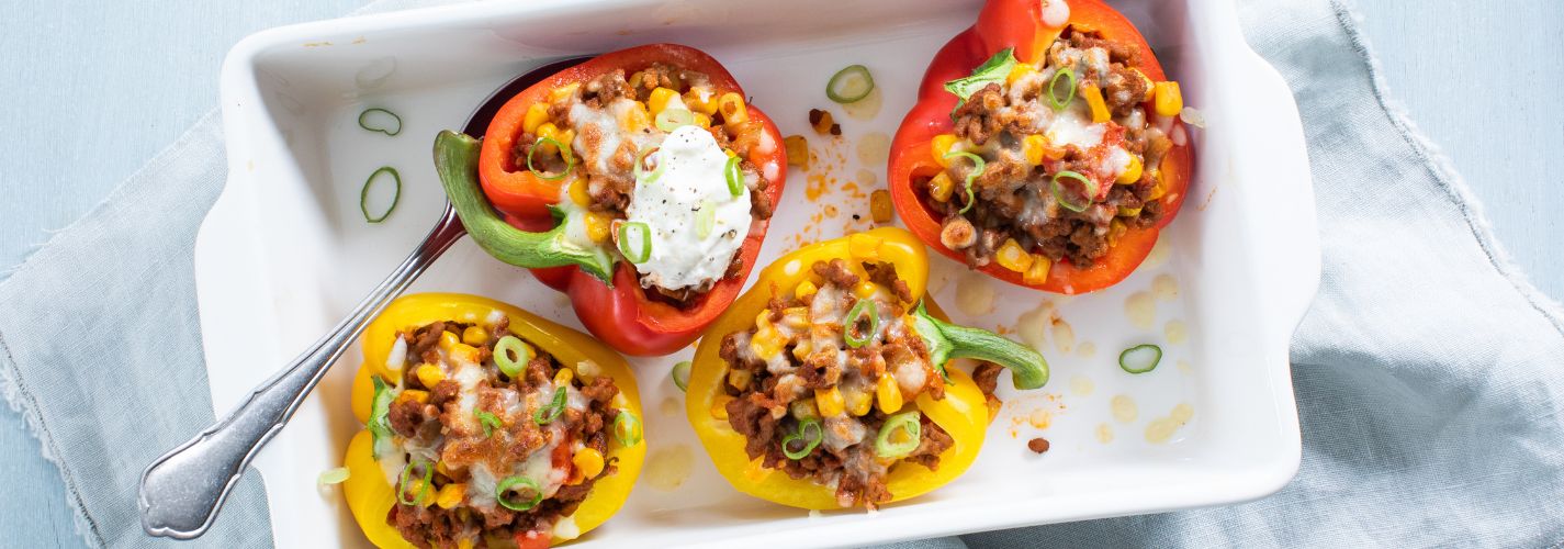 Gevulde paprika's hebben voor mij altijd de perfecte smaakcombinatie! De knapperige paprika, het gekruid gehakt, de zoete mais en heerlijk laagje kaas zorgen voor een heerlijke mix van structuur en smaak. Na het bakken voeg ik ook nog altijd een lepeltje zure room toe voor een lekker sausje. Ik maak dit recept vaak ik wanneer geen zin heb om super lang in de keuken te staan, maar wel iets voedzaams en smaakvols wil bereiden. En het maken is ook nog eens super eenvoudig! Je bereidt alleen maar de ingrediƫnten in de pan, vult de paprika's en dan doe je ze even de oven in. Ze zijn overigens ook super lekker uit de airfryer of van de bbq!