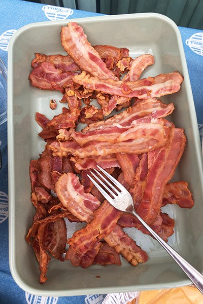 - Zorg voor voldoende handige schalen (liefst met deksel). Ik heb gretig gebruikt gemaakt van de pyrex schalen van de Jumbo die je nu kunt sparen. Je kunt hier alle toppings in bewaren en vlak voor het serveren uit de koelkast halen, deksel er af en klaar. En daarna weer snel en makkelijk terug zetten in de koeling. Ook had ik een schaal met deksel neergezet voor de hamburgers die klaar waren zodat ze daar warm in bleven en vrij van vliegen en insecten.