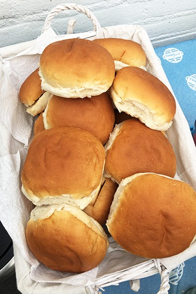 - Voor de broodjes had ik gekozen voor diepvries hamburgers van de Hanos. Die kosten nog geen 4 euro per 32 stuks. Ik heb ze de avond van te voren laten ontdooien in verpakking en waren de volgende dag lekker vers. Tevens zijn ze al doorgesneden, wat weer tijd en werk scheelt.