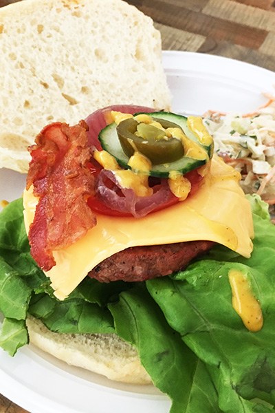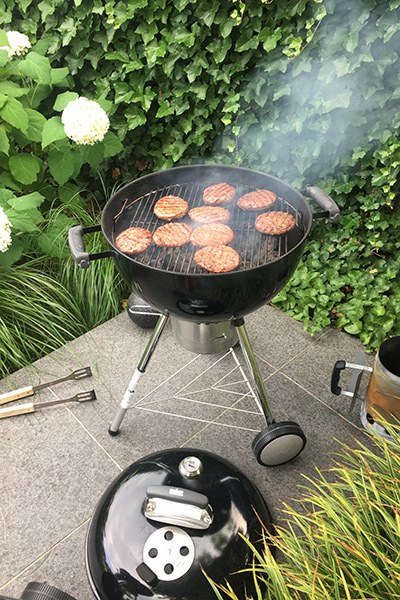 - Eric heeft de hamburgers gebakken op de barbecue. We hadden nog een extra barbecue geregeld zodat we er veel in 1 x konden bakken. Gelukkig is Eric een perfecte grillmaster en bakte hij de burgers perfect gaar. Geen mooi weer? Je kunt de burgers ook binnen bakken in de pan of van te voren bakken en even in de oven of magnetron opwarmen voor het serveren.
