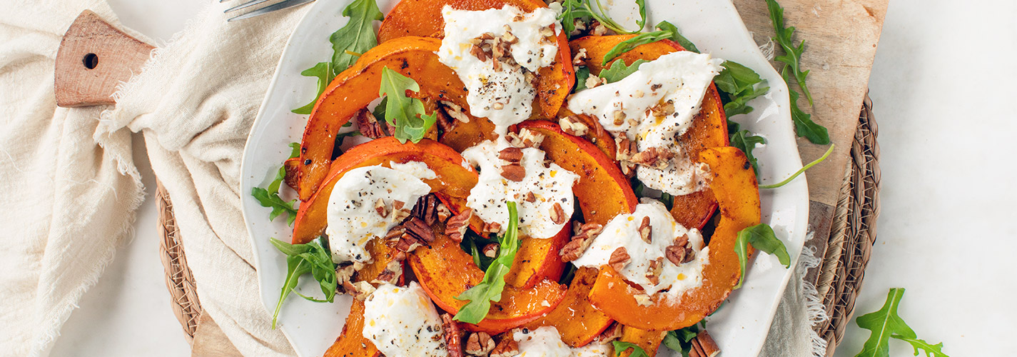 Makkelijk en smaakvol recept voor pompoen met burrata. Sinds ik burrata heb ontdekt probeer ik steeds meer combinaties uit. En deze combi met kruidig geroosterde pompoen is echt heerlijk, zeker met de krokante pecannoten. Een echte herfsttopper voor op tafel!