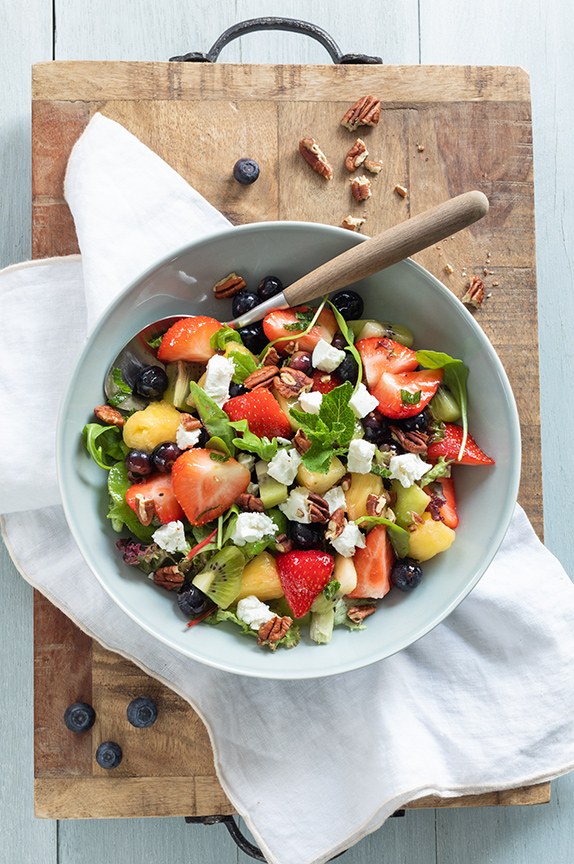 – Salades: pastasalade, couscous salade, aardappelsalade of fruitsalade