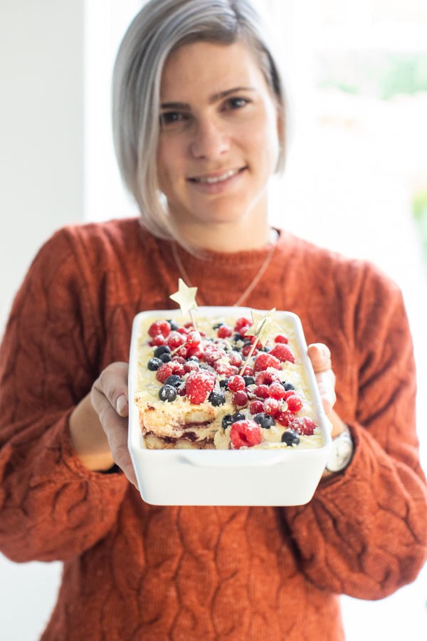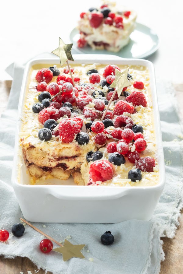Zelf eet ik niet zo vaak tiramisu als dessert. Ik ben dol op de smaak van tiramisu maar omdat het ook erg zwaar en machtig is vind ik het vaak te heftig, zeker na een uitgebreid diner. Maar deze variant met bosvruchten is erg fris en fruitig van smaak en daardoor een stuk lichter. Of misschien is het alleen mijn gevoel maar ik kon er in ieder geval een flink stuk van op š