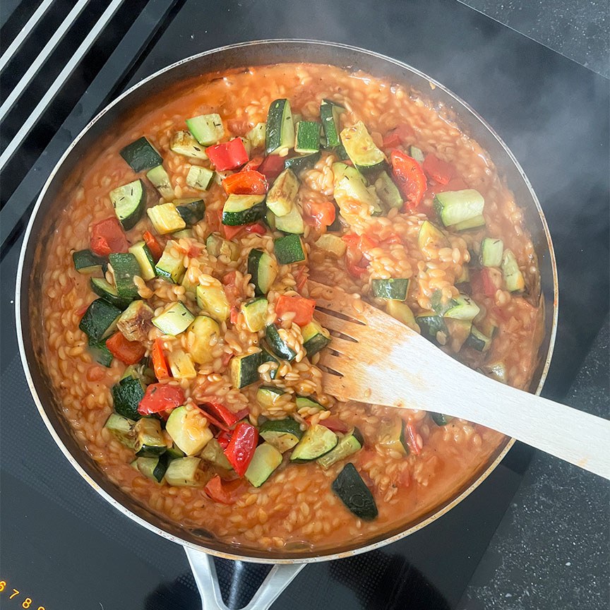 Ik maakte weer heel wat lekkere recepten, deze orzo met geroosterde groenten is er een die hier regelmatig op tafel komt. Hij zit bomvol groenten en is ook ideaal om voor twee dagen te maken.
