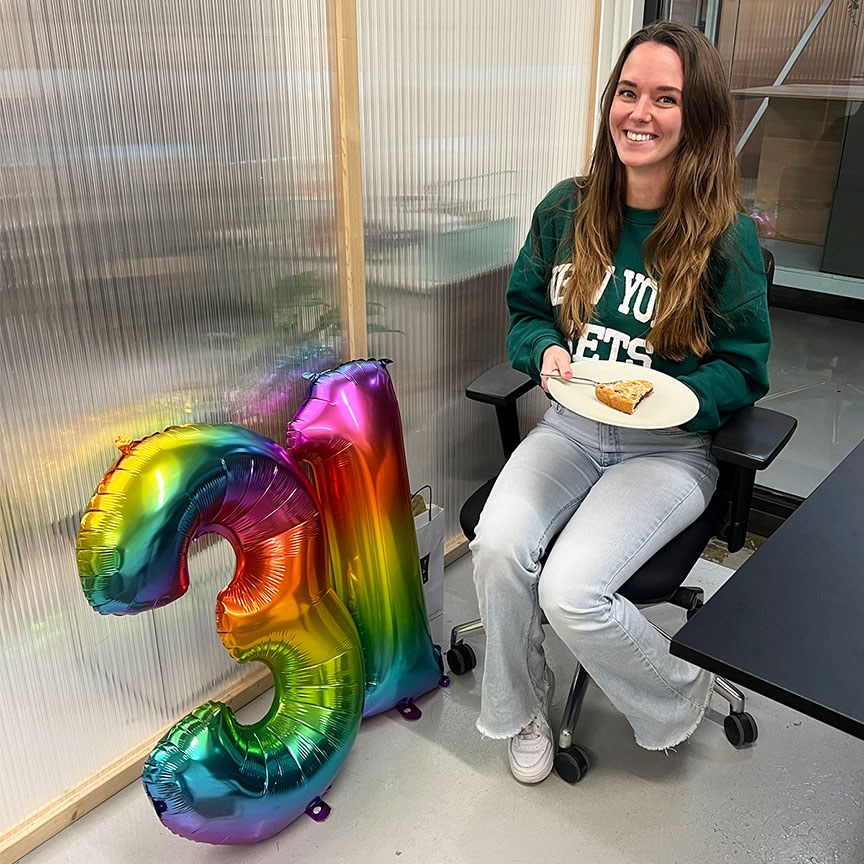Mijn collega Nienke werd 31 jaar, en dat vierden we op kantoor met ballonnen, taart en cadeautjes!
