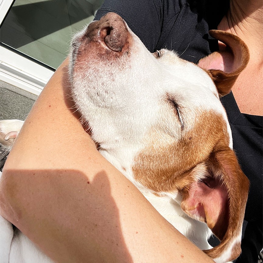 Gelukkig kwam het zonnetje vaak tevoorschijn en daar werd ook onze hond Payo blij van. En het liefst ligt hij lekker in mijn armen te genieten van het zonnetje.