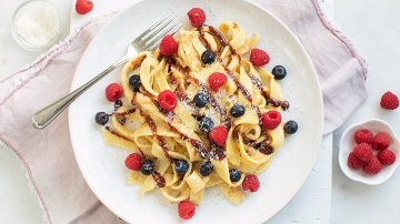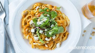 Het kan soms best een uitdaging zijn om een kind elke dag genoeg groente en fruit te laten eten. Om dit makkelijker te maken, kun je bijvoorbeeld groente blenden als een saus, zodat ze niet doorhebben dat er eigenlijk heel veel groente in zit. Zoals bijvoorbeeld bij deze tagliatelle met groentesaus. Of je begint het avondeten met een heerlijke soep waar al veel groente in zit. Ook kun je een lekkere smoothie maken met zoete fruitsoorten. Laat een kind hier bij helpen, want als je kinderen zelf wat laat maken dan eten ze het ook eerder op.